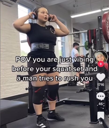 Recently a young woman was squatting in the gym while filming her set when an innocent gym goer who was in the background of the video asked her to be quick with the filming because he didn’t wanna be in the video.
