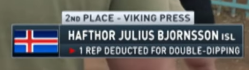 Because of the rules in that event, Thor didn’t get one of his reps counted as he “double-dipped” in the Viking Press, which is against the rules.