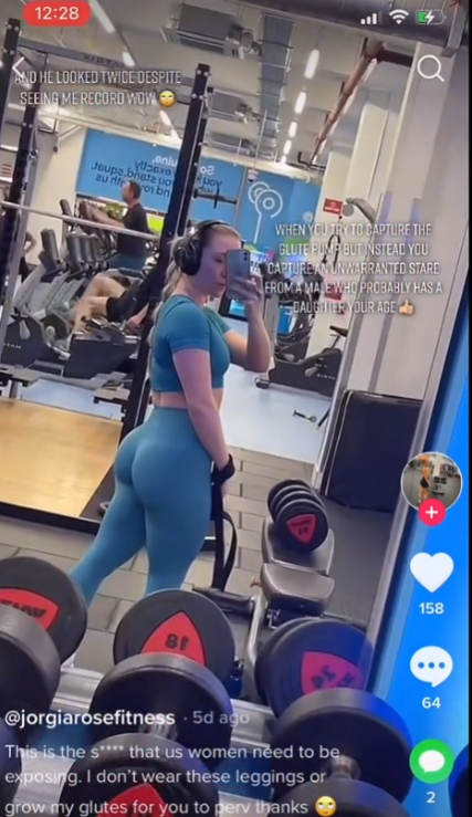 This man did nothing wrong, he is in a public gym, minding his own business, getting a great workout in and you decide to film him and shame him on social media to make yourself out to be a victim which you are not, for likes and attention. You are in the middle of the gym sticking your but out, trying to take a selfie which you don’t see every day and he happened to look over at you for a brief second and you label him as a pervert. So you want attention to feel like a victim all at the expense of the women who are actually harassed in gyms and I think it’s funny that you say he may have a daughter your age did you think about that? Cause he may have a daughter and a wife and a family and a job all that you put at risk so you could feel like a victim and get some attention on social media. My advice put your headphones in, apologize to this man and next time mind your own business, be better than that.