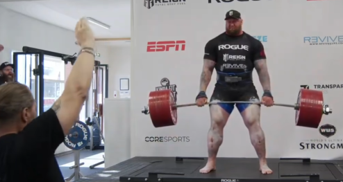 Thor beat that record when he deadlifted 501 kg’s in his home gym in Iceland.